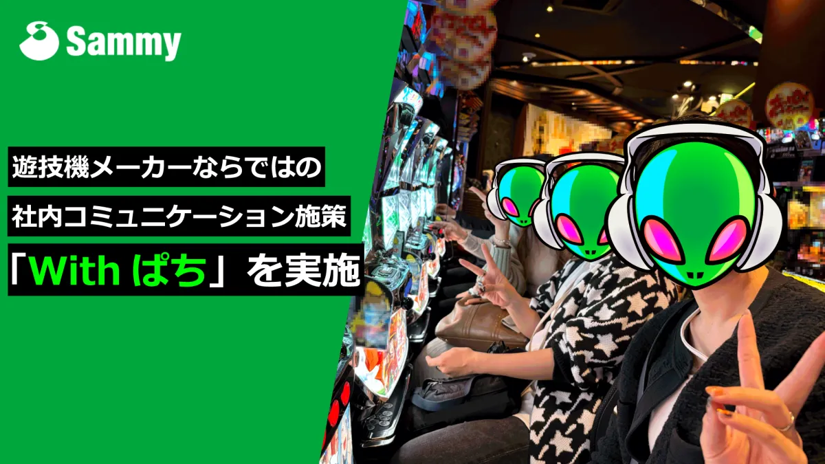 サミー株式会社が取り組む「Withぱち」は、遊技機メーカーとして特有の社内施策です。この施策は、社員同士のコミュニケーションの活性化および今後の遊技機開発への寄与を目的としています。特に、社員が2人以上でホールに行き、遊技を楽しむことを促進する内容になっております。