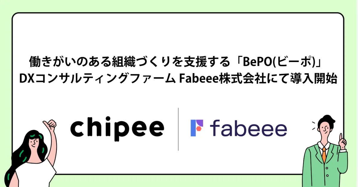 DXコンサルティングファームのFabeee株式会社は、働きがいのある組織づくりを支援するサービス「BePO」を導入しました。これは、顧客や同僚との関係性を深めることで、社員の働きがいを高めることを目的としたサービスです。この導入により、社内の共感を促進し、より良い職場環境を実現することを目指しています。