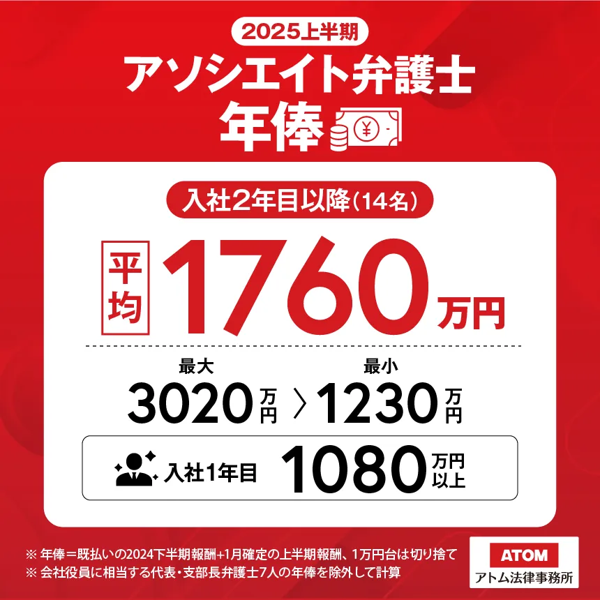 アトム法律事務所(代表:岡野武志、本社:東京都千代田区)が、2025年度における弁護士報酬データを発表しました。この取り組みは法律業界の報酬体系の透明性を促すためのものです。公開されたデータによれば、2年目以降のアソシエイト弁護士における平均報酬は1760万円で、これは前年の平均1550万円から約13.5%も増加しています。