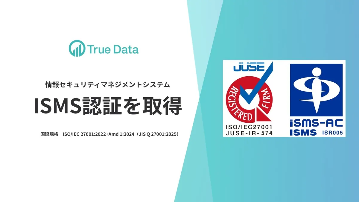 株式会社True Data(トゥルーデータ)は、2025年9月に情報セキュリティマネジメントシステム(ISMS)の国際認証「ISO/IEC 27001:2022+Amd 1:2024(JIS Q 27001:2025)」を取得したことを発表しました。この認証は、データを扱う企業においてセキュリティに対する取り組みが国際基準を満たしていることを示すもので、クライアントに対する信頼性の向上が期待されています。