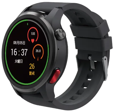 このサービス用のウェアラブルウォッチは、最新の機能を搭載しており、体温上昇に伴う異常を早期に検知する独自のアルゴリズムを備えています。これにより、作業現場における安全管理がより一層強化されます。