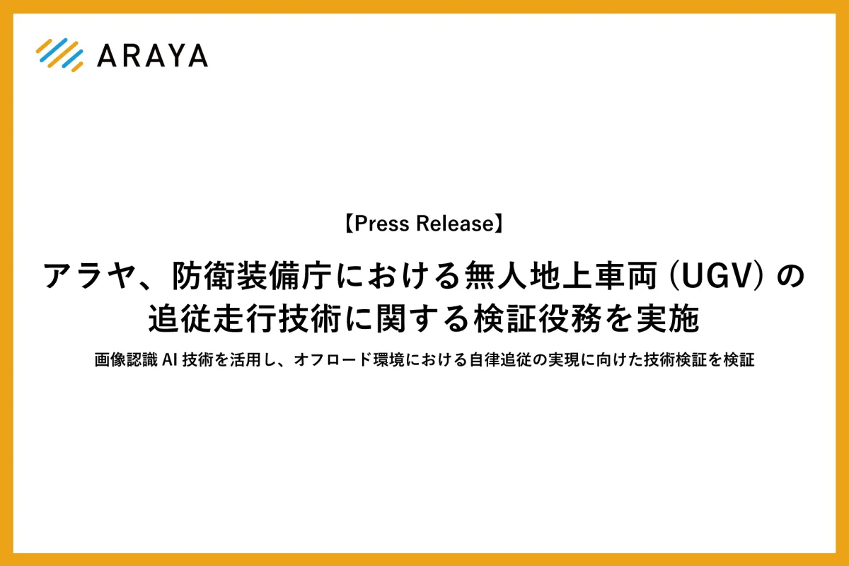 株式会社アラヤ(本社:東京都千代田区、代表取締役:金井良太)は、防衛装備庁陸上装備研究所からの依頼で、「追従走行検討役務」に関する重要な検証作業を行いました。近年、防衛や安全保障の場面での無人化技術、特に無人地上車両(UGV)の活用が進む中、その基盤機能である追従走行技術が注目されています。