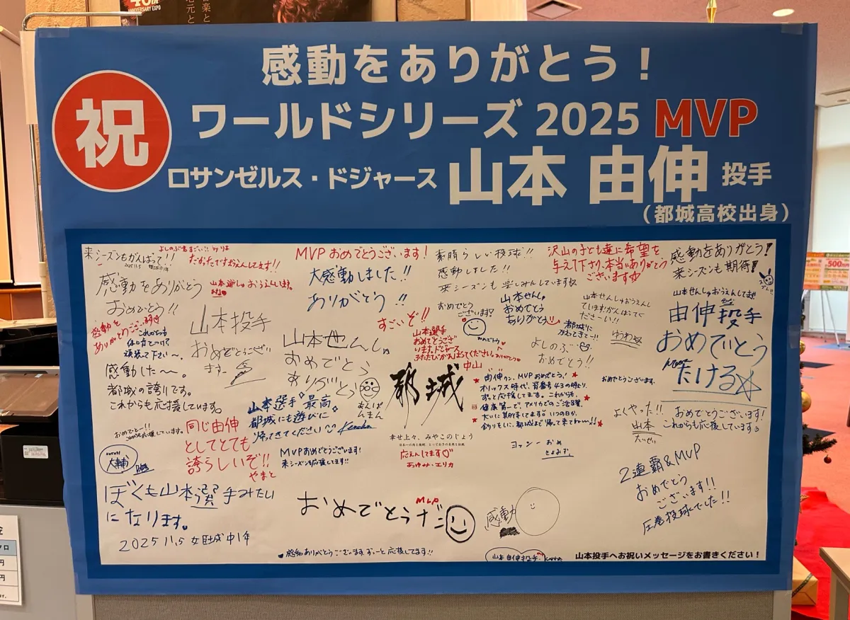 設置期間は、令和7年11月5日(水)から11月12日(水)まで。この期間中、誰でも自由にメッセージを記入でき、あなたの想いを誰かの心に届けることができます。また、書かれたメッセージは全て画像データとして山本投手に送られ、彼の励みとなることでしょう。