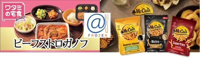 さらに、@FROZENでは、国内未発売の「マッケイン ポテト」が登場します。マッケインは、フライドポテトの世界的なメーカーで、特に味付けポテトが豊富に取り揃えられています。例えば、ガーリックとオニオンのスパイスが効いた「スーパーフライ ストレートカット」や、クラフトビールを使用した生地が特徴の「ビストロ ビアバッターフライ」などがあります。これらはパーティーや朝食、おやつなど、多彩なシーンで活躍します。