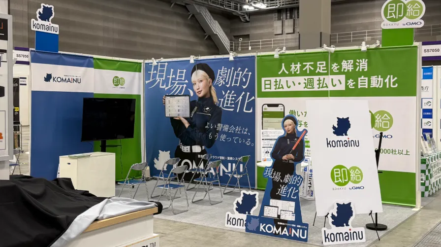 警備業界のデジタルトランスフォーメーション(DX)を推進する株式会社ジャガーノートは、東京ビッグサイトで開催された国内最大級の防犯・セキュリティ総合展「SECURITY SHOW 2026」に出展しました。特に注目を集めたのは、警備業に特化したバックオフィスDXシステム「KOMAINU」と、GMOペイメントゲートウェイ株式会社が提供する給与前払いサービス「即給 byGMO」の共同ブースです。