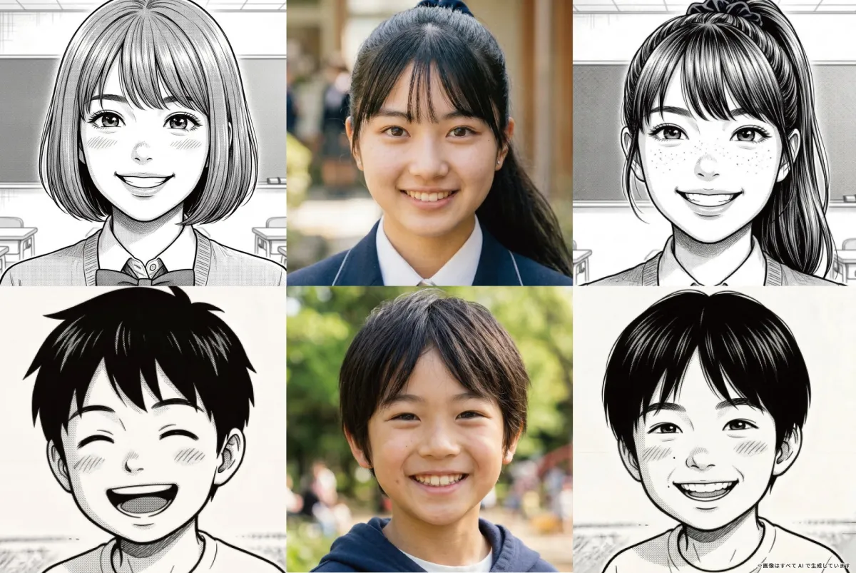 「AIマイストーリー」は、参加者が自分の顔を漫画のキャラクターとして反映させ、オリジナルのマンガを生成する体験型コンテンツです。イベントの参加者には、自分が主人公となったマンガを製作するワークショップ「AIマンがっこう!」が用意されていて、自分の顔が登場する物語に圧倒的な興奮を体感できます。