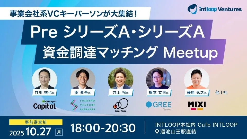 2025年10月27日、INTLOOP株式会社が主催する「PreシリーズA・シリーズA資金調達マッチングMeetup」が東京都港区にて開催されます。このイベントは、スタートアップ支援プログラム「INTLOOP Ventures」の一環として行われ、事業会社系ベンチャーキャピタル(CVC)6社が一堂に会します。加えて、各CVCは自身の投資戦略や過去の協業事例を直接共有し、スタートアップとの新たな出会いを促進することを目的としています。