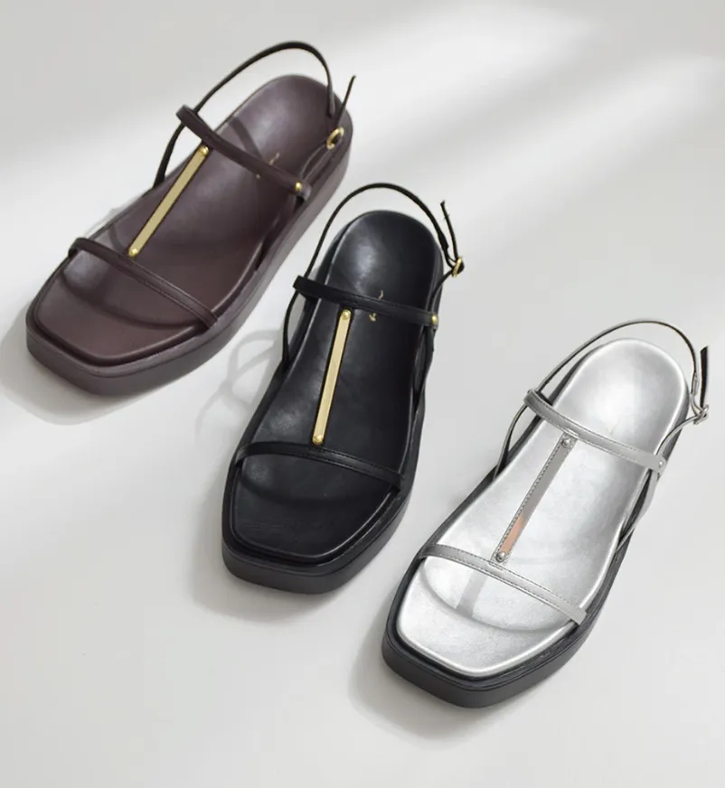 新作サンダルの最大の特徴は、ミニマルなデザインと、Tストラップのゴールドのセンターラインによるアクセントです。このデザインはカジュアルスタイルにもエレガントな装いにもマッチし、どんなシーンでも活躍してくれます。特に華奢なストラップは、大人の上品さを引き立ててくれ、夏の装いに涼やかな抜け感を追加します。