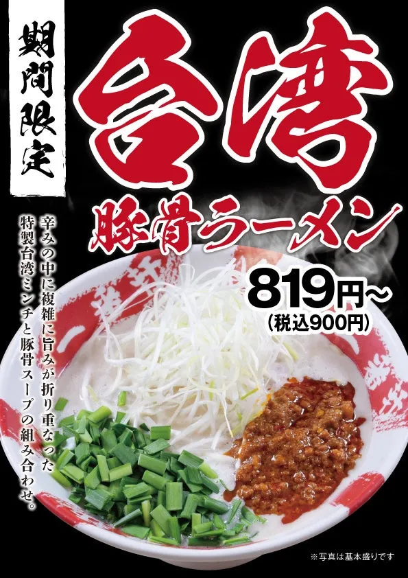一番軒は、2023年10月8日より、期間限定で「台湾豚骨ラーメン」を販売開始しました。この新作ラーメンは、濃厚な豚骨スープと秘伝の台湾ミンチを融合させたもので、辛味と旨味の新しいハーモニーが生み出されています。
