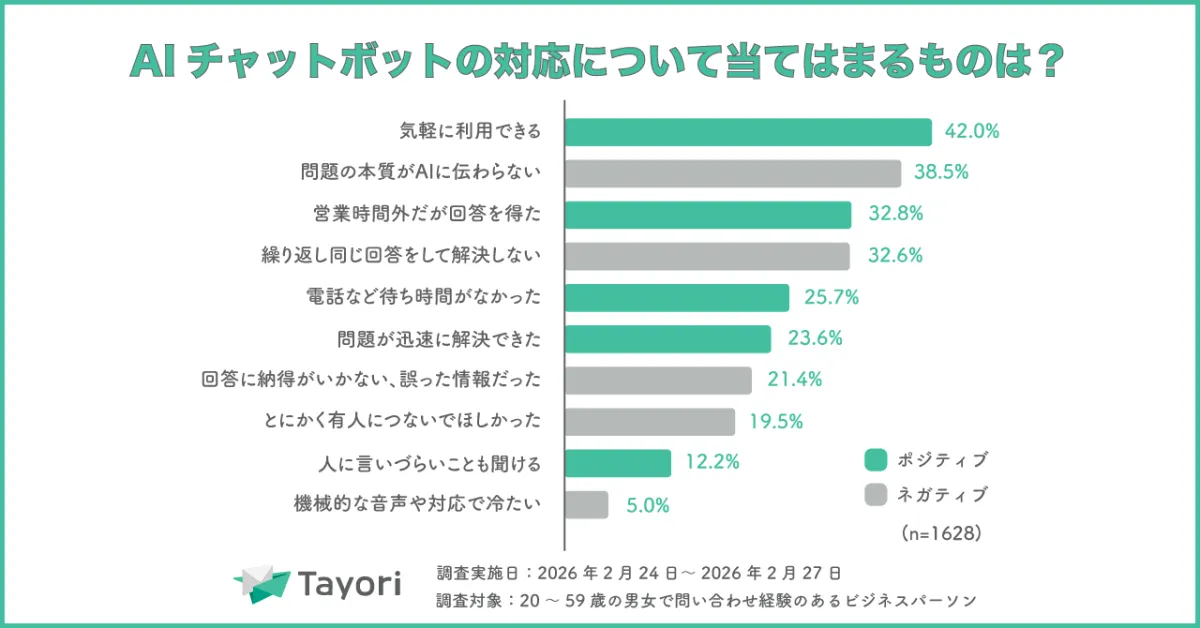 一方、顧客の問い合わせ行動もまた変化を遂げています。有人電話での問い合わせは年々減少し、2026年には36.2%まで下がりました。対して、「お問い合わせフォーム」や「チャットボット」を利用する生活者が増え、これにより企業は迅速な対応を求められるようになっています。