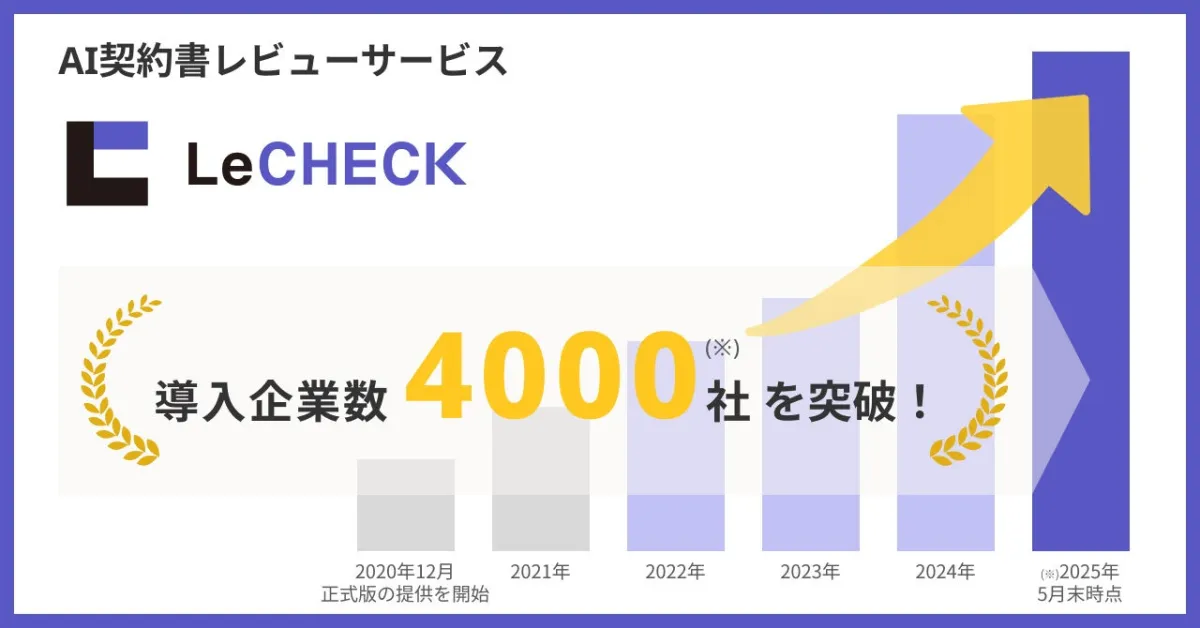 AI契約書レビューサービス「LeCHECK」は、企業法務の業務負担を軽減し、質を向上させる頼りになるパートナーです。導入数が4,000社を突破したこのサービスは、今後も企業のニーズに応え続けていくでしょう。
