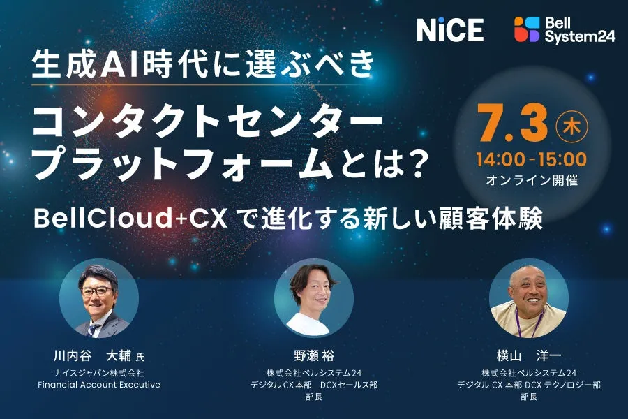 株式会社ベルシステム24では、顧客とのより良いコミュニケーションを目指し、オンラインセミナー「生成AI時代に選ぶべきコンタクトセンタープラットフォームとは? ~BellCloud+CXで進化する新しい顧客体験~」を2025年7月3日(木)に開催します。本セミナーは、コンタクトセンター運営に携わる企業の方々に向けて、生成AIを活用した新たな顧客体験の創出に関する最新情報を提供することを目的としています。