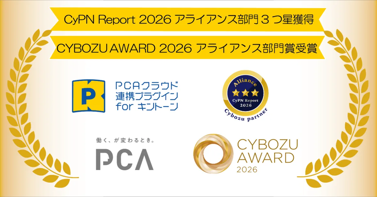 さらに、PCAは「CYBOZU AWARD 2026」においてアライアンス部門賞を受賞しました。この賞はサイボウズのビジネスにおいて顕著な成果を上げたオフィシャルパートナーに対する表彰制度です。受賞の背景には、PCAの取り組みが大きく評価されたことがあります。