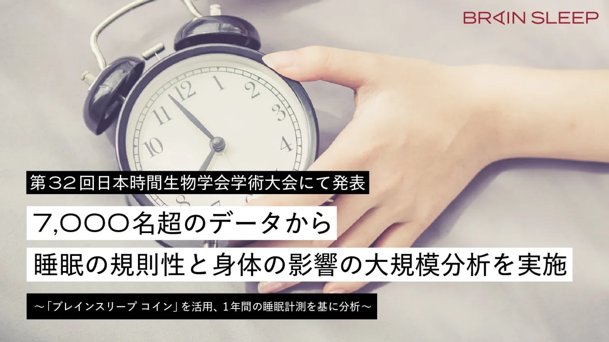2025年10月4日から5日にかけて、京都府立京都学・歴彩館で開催された第32回日本時間生物学会学術大会にて、株式会社ブレインスリープが行った大規模なデータ分析の結果が発表されました。今回は、約7,419名のユーザーから得られたデータに基づき、ソーシャルジェットラグや睡眠/覚醒リズムの規則性が、どのように睡眠指標に影響を及ぼすかが解析されました。