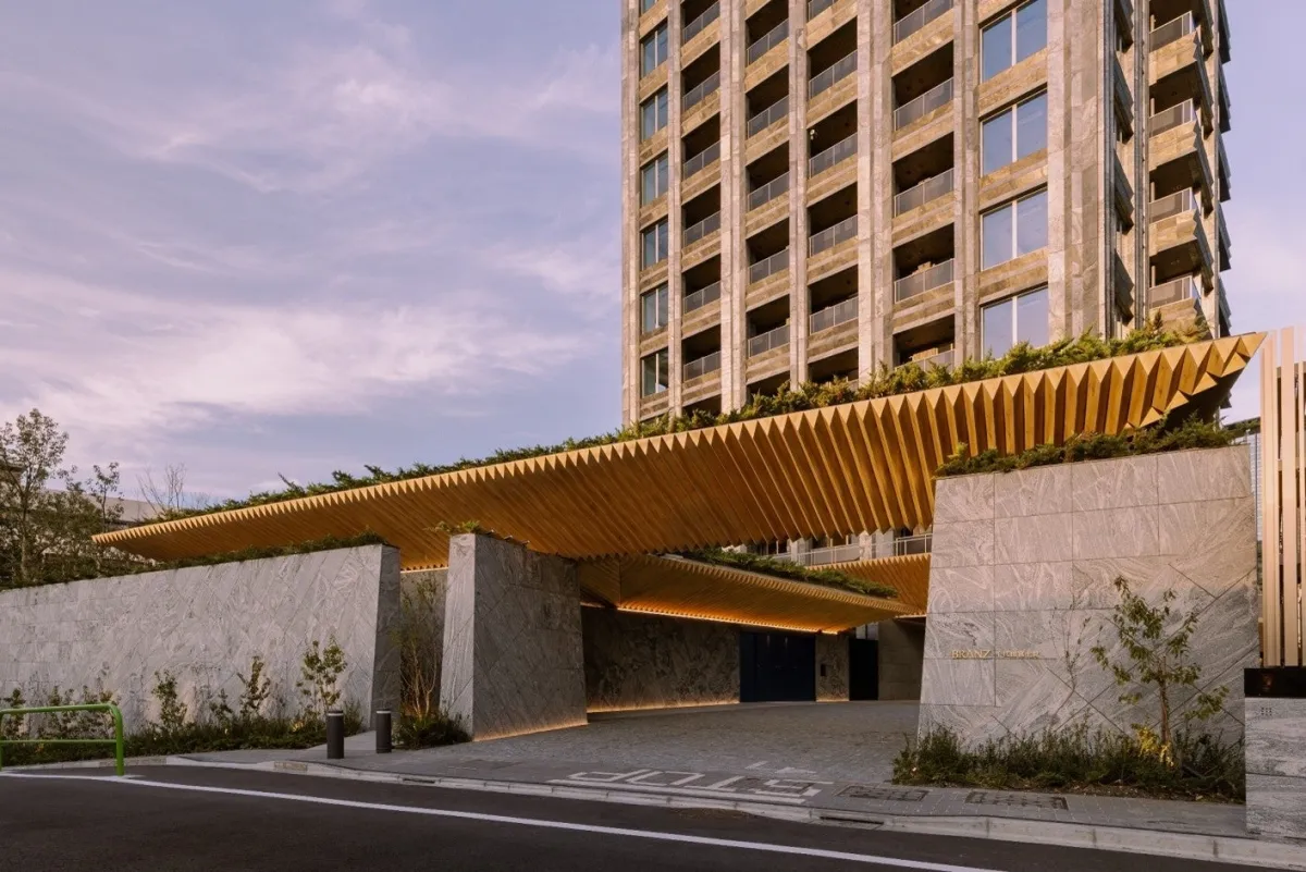 隈研吾氏によるデザインは、「豊かな緑の中に浮遊する厳かな石のヴェール」というテーマで、どの時間帯でも異なる表情を楽しむことができます。細部にこだわり抜いたデザインは、居住者に高級感と落ち着きを提供し、周囲との調和を大切にしています。特にエントランスは、石と木を融合した美しい構成で、訪れる人々を温かく迎え入れます。