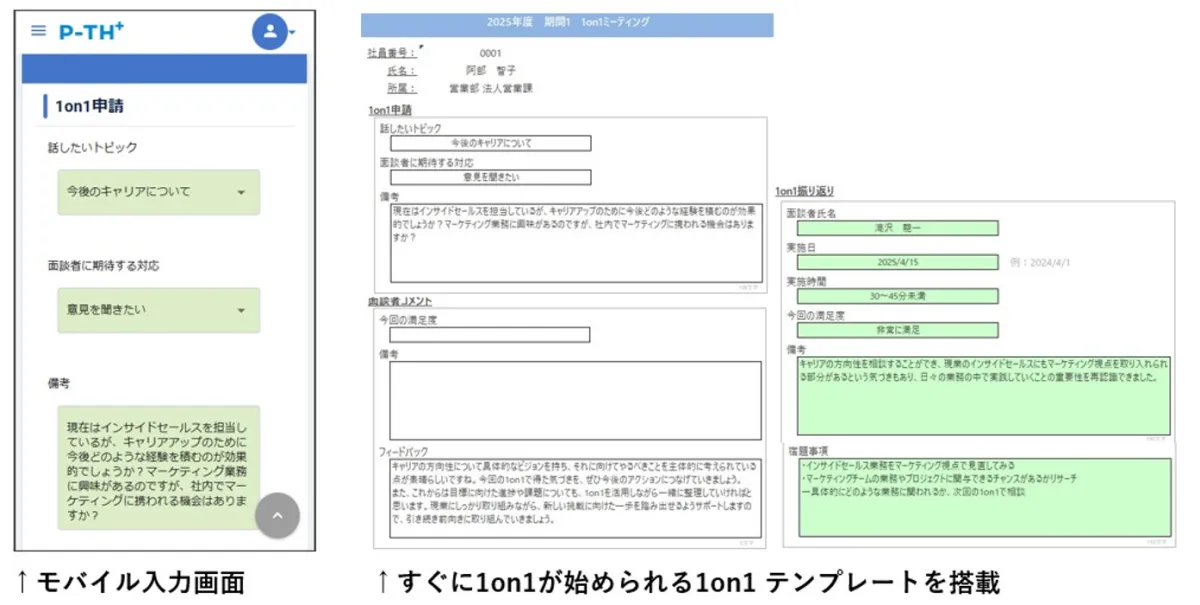 新たに追加される1on1管理・分析機能は、上司と部下の一対一のミーティングを効率的かつ効果的に行うためのシステムです。この機能の主要な利点は、1on1の質を向上させることで、職場のエンゲージメントを高め、離職率の低下にも寄与することです。具体的には、以下のような機能があります: