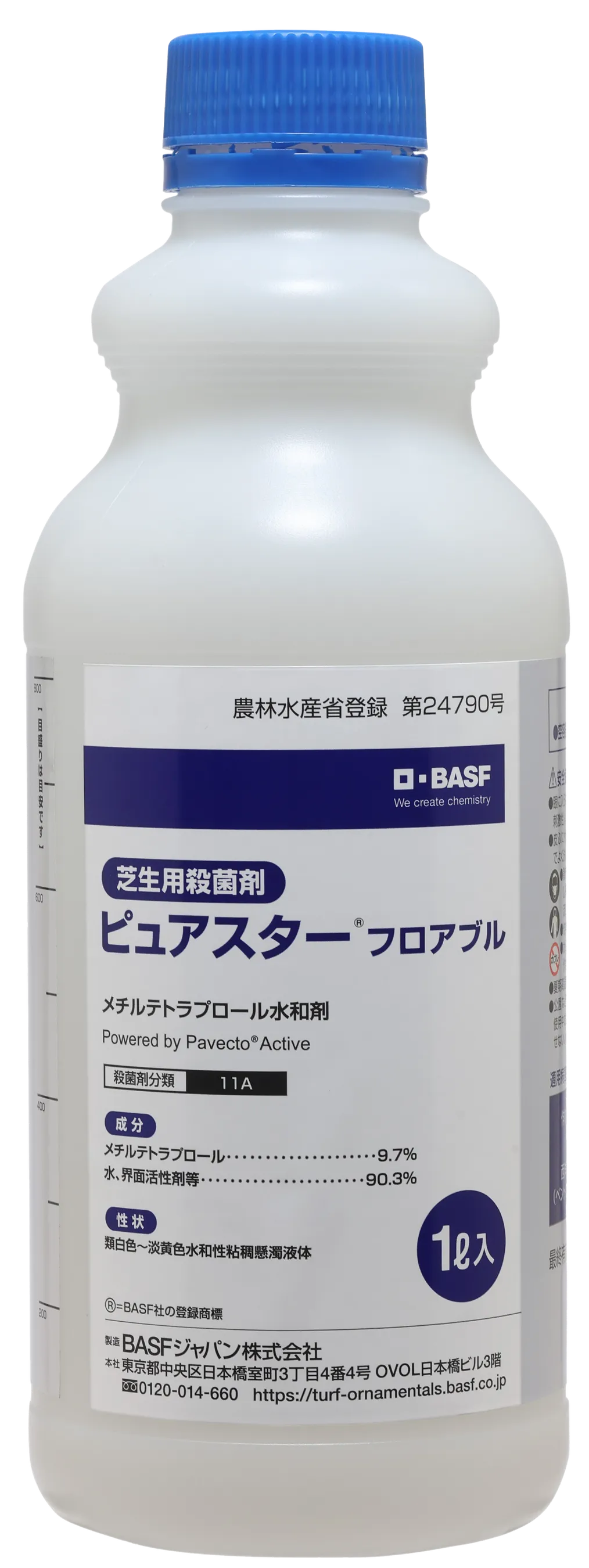 新しい有効成分「Pavecto®」を採用したこの殺菌剤は、高温多湿に強いベントグラスの炭疽病に対して特に効果を発揮します。Pavecto®はBASFと住友化学の共同開発によるもので、農作物の病害に広く対応できる性能を持っています。近年の高温条件での試験でも薬害が確認されておらず、高い安全性が評価されています。