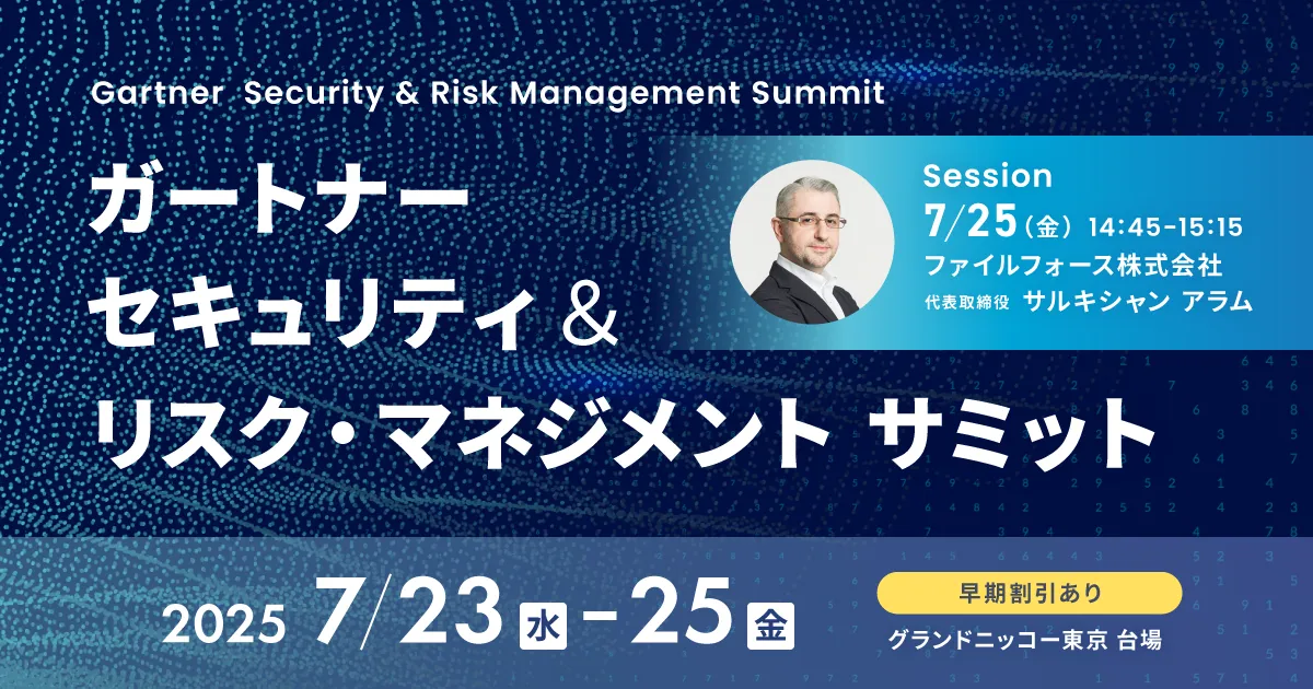 ファイルフォース株式会社が提供するクラウドストレージ「Fileforce」は、2025年7月23日から25日にかけて東京のグランドニッコー東京台場で行われる「ガートナー セキュリティ & リスク・マネジメント サミット2025」に出展します。このイベントは、セキュリティやリスク・マネジメントの最新トレンドと課題解決のための情報を提供する場として、多くの先進的なCISOやITエグゼクティブが一堂に会する貴重な機会です。