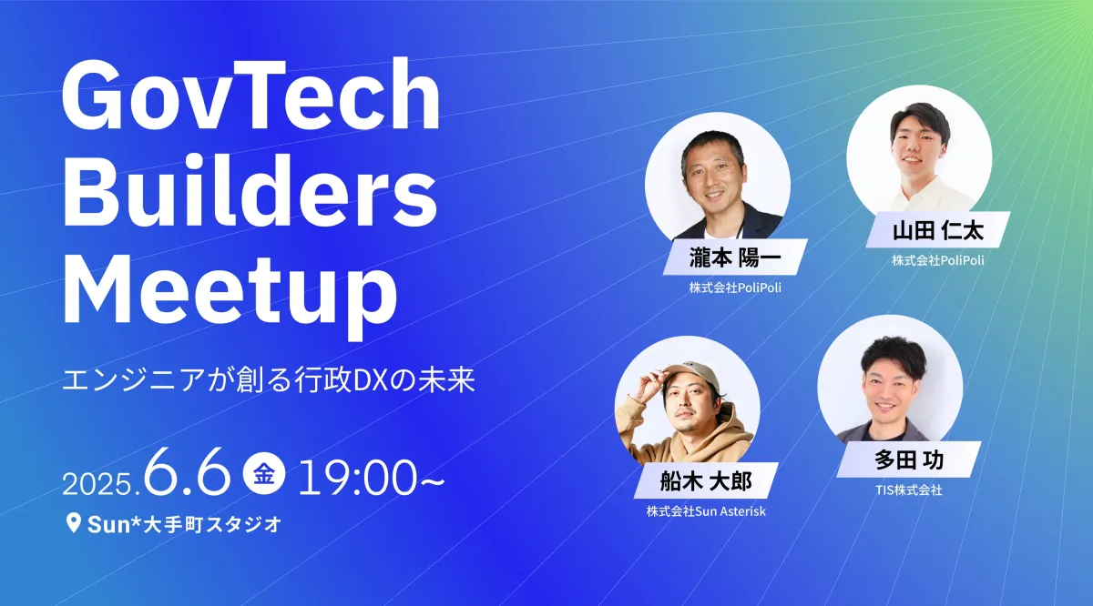 2025年6月6日、株式会社PoliPoliと株式会社Sun Asteriskが共催し、行政のデジタルトランスフォーメーション(DX)に特化したイベント『GovTech Builders Meetup』が開催されます。このイベントは、行政の未来を創り出すために挑戦するエンジニアたちにとって理想的な場となるでしょう。都内のSun