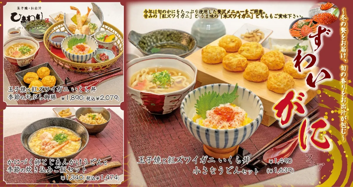 大阪を拠点とするM&Sフードサービス株式会社が運営する「玉子焼・お出汁ひまわり」では、2025年11月19日(水)から2026年1月13日(火)までの期間中、旬のズワイガニを使った特別なメニューが楽しめる「ズワイガニフェア」を開催します。この機会に、海の恵みを存分に堪能していただきたいと思います。