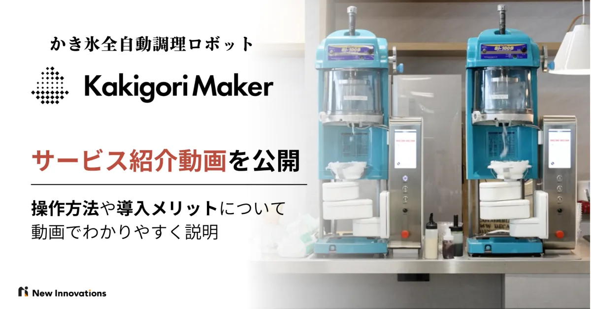 New Innovationsは、Kakigori Makerの利便性を伝えるために、サービス紹介動画を2本公開しました。一つ目の動画では、実際の操作シーンや、どのような課題を解決すべく開発されたのかが説明されています。二つ目の動画では、飲食店で日常的に直面するシチュエーションに対して、このロボットがどのように役立つかが紹介されています。特に、削り方に均一性を持たせることで商品の質を安定させている点が強調されています。
