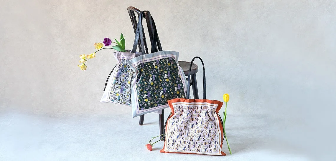 新たに加わったカラーは、グリーン、グレージュ、オレンジの3色。それぞれのトートバッグは、まるで華やかなスカーフのようなプリントが施されており、軽やかさと柔らかさを持つ素材が使われています。これにより、シンプルな装いにも自然と溶け込み、優雅なアクセントをプラスします。