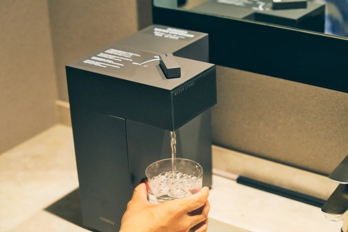 国内ではまだ事例が少ない全客室へのウォーターサーバー導入。本プロジェクトの実施は、ノーガホテル清水京都が環境保護を考慮して進める重要な施策の一環として位置づけられています。水道水を浄水して提供するウォーターサーバーは、電気を使用しないスタイルで、いつでも衛生的な水を宿泊者に提供します。これにより、宿泊ゲストは24時間利用可能で、外出時にはマイボトルへの補充も容易になります。環境保護とともにゲストへの利便性も大いに高まります。