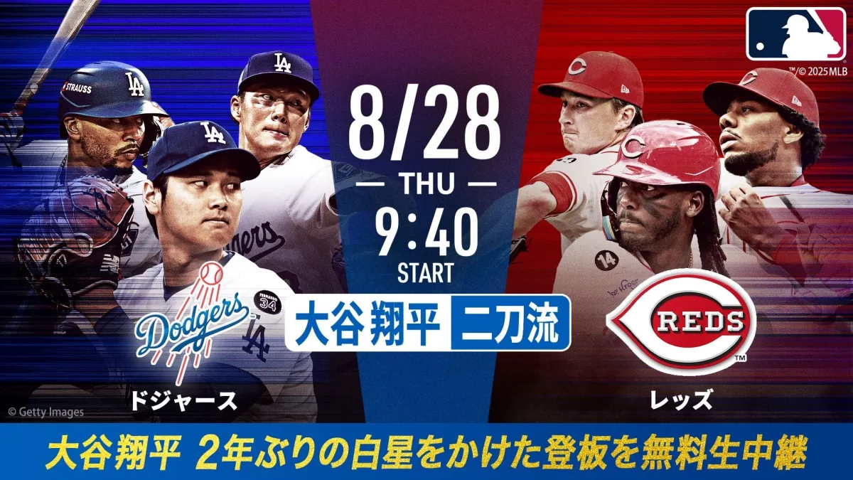 8月28日、日本時間午前9時20分から無料で生中継されるのは、メジャーリーグベースボールのロサンゼルス・ドジャース対シンシナティ・レッズの試合です。この試合では、我らが大谷翔平選手が先発投手として登板します。ファンの期待が高まる中、彼が2年ぶりの勝利投手として記録を更新する瞬間を目撃することができるでしょう。
