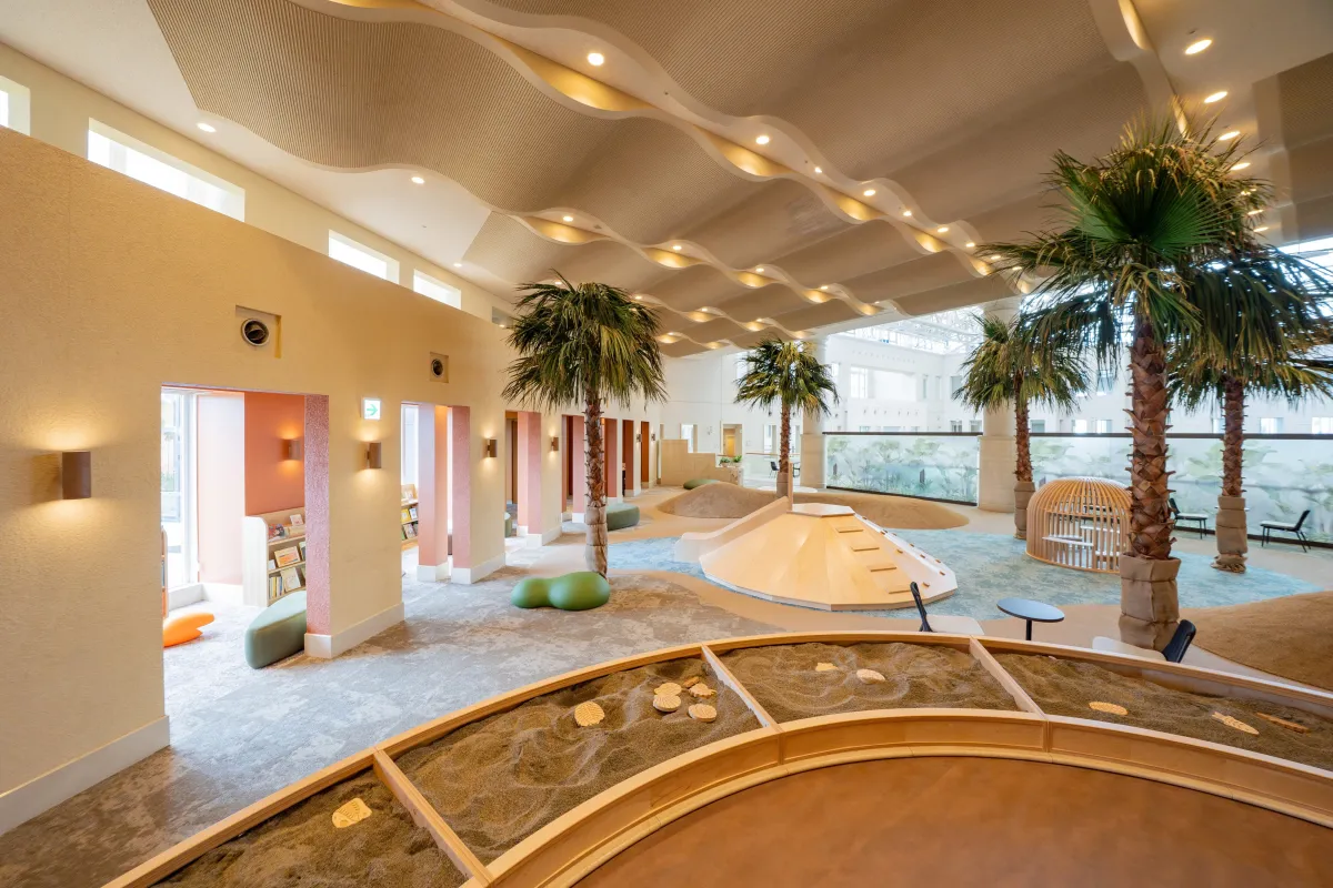 「KIDS OASIS」は、オアシスやサバンナをテーマにした独自のデザインが特徴です。ここでは、ダイナミックな大型遊具エリアや創造力を育むブロックあそびができるゾーン、さらには乳児向け空間も整備されています。一人ひとりの年齢や興味に応じた体験ができるため、親子で安心して楽しめる場所となっています。