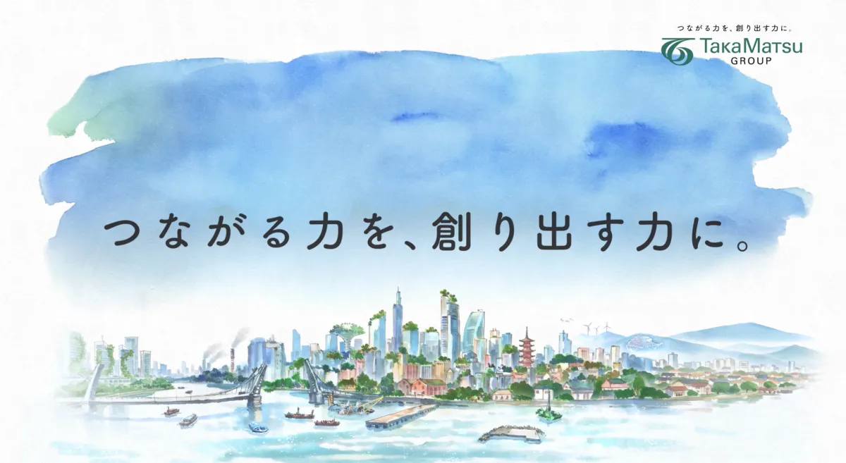 今回のブランドムービーは、多彩な施工物件や工事現場、建設機械などが登場する内容となっており、髙松グループが100年以上にわたり地域と人々の暮らしに寄与してきた歴史を描いています。映像を通して、過去の実績から未来への展望、そして都市と地域のつながりを視覚的に表現することで、企業の理念が伝わることを目指しています。
