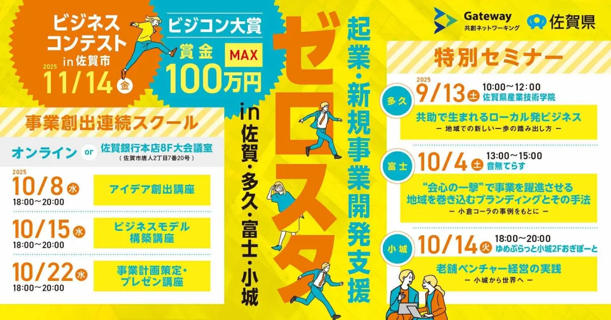 佐賀県で新たなビジネスを生み出すための支援プロジェクト『ゼロスタ』が、この秋から新しいステージに突入します。1期目は唐津で、2期目は鹿島エリアで行われたこのプログラムは、3期目に突入し、多久市、富士町、小城市、佐賀市を舞台にさらなる展開が待っています。以下では、特別セミナーや従来の事業創出支援に関する情報を詳しく紹介します。