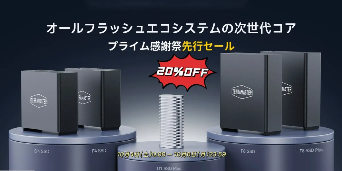 TERRAMASTERは、そんなニーズに応えるストレージソリューションを提供するブランドです。個人ユーザーから中小企業まで、その幅広い製品群が支持されています。特に、Amazon日本の「プライム感謝祭先行セール」では、年間最安値で人気製品を手に入れる大チャンスとなっています。このセールは、10月4日(土)から10月6日(月)の期間限定で実施され、最大で40%の割引が適用されます。