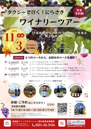 11月3日、韮崎市で開催される「にらさきワイナリーツアー」は、タクシーを利用して市内のワイナリーを巡る特別なイベントです。このツアーは完全予約制で、事前予約は10月1日から30日まで受け付けています。浪漫あふれるワイナリーツアーで、地元の特産であるにらさきワインの歴史やテロワールを楽しむ貴重な機会です。