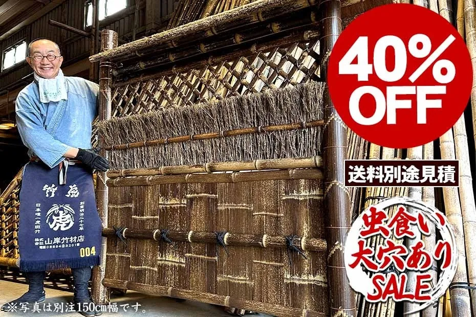 長い歴史を持つ竹材専門店「竹虎」は、創業以来125年以上にわたり、高知県須崎市で竹細工を手がけてきました。今、そんな竹虎から特別なオファーが登場しました。それは、虎斑竹(とらふだけ)を使った袖垣のアウトレット品が40%OFFで販売されるというものです。この機会に、自然の美しさと独自の魅力をもつ虎竹にぜひ触れてみてください。