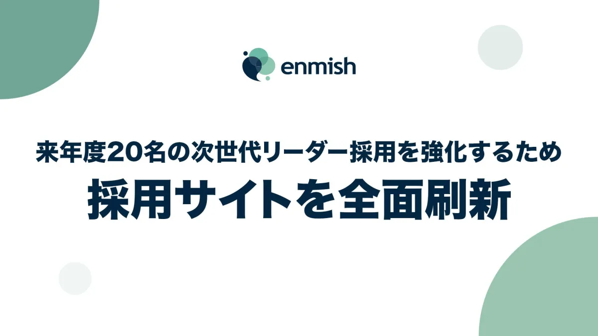 株式会社エンミッシュ(本社:東京都渋谷区)は、採用サイトを全面的に改訂し、来年度に20名の次世代リーダー育成を特に重視した採用活動を行うことを発表しました。この採用強化の背景には、若手人材の「当事者化」を通じて、日本の成長を加速させるという明確なビジョンがあります。