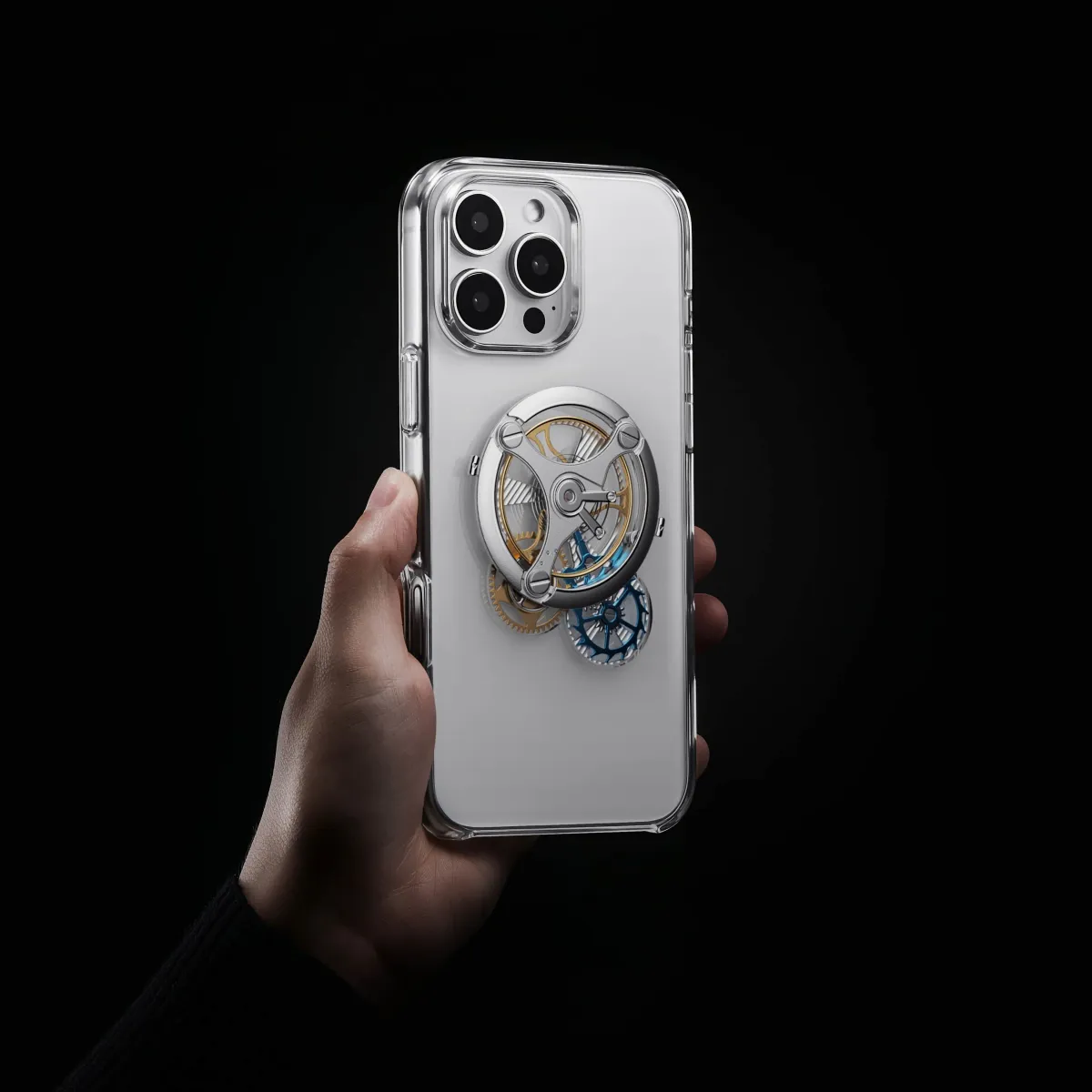 「Escapement Phone Case」は、ただのスマートフォンケースではありません。背面には精巧な時計のメカニズムを内蔵し、手の中で時間の流れを実感できる特別なアイテムです。高透明度のサファイアクリスタルを使用した背面が、内部の動きはもちろんのこと、美しさをも強調しています。この設計は、技術とアートの絶妙なバランスを保ち、使用するたびにまるで時計を所有しているかのような感覚を与えてくれます。