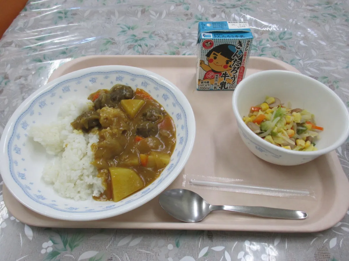 ジビエ給食は、2023年2月4日(水)に久野小学校で行われました。この日のメニューは、ジビエカレーライス、野菜ソテー、そして牛乳。特にジビエカレーは、鹿肉団子がたっぷりと入っており、味わい深い一皿に仕上がっていました。児童たちは初めての鹿肉の味に戸惑いながらも、おいしさに驚く声が上がりました。