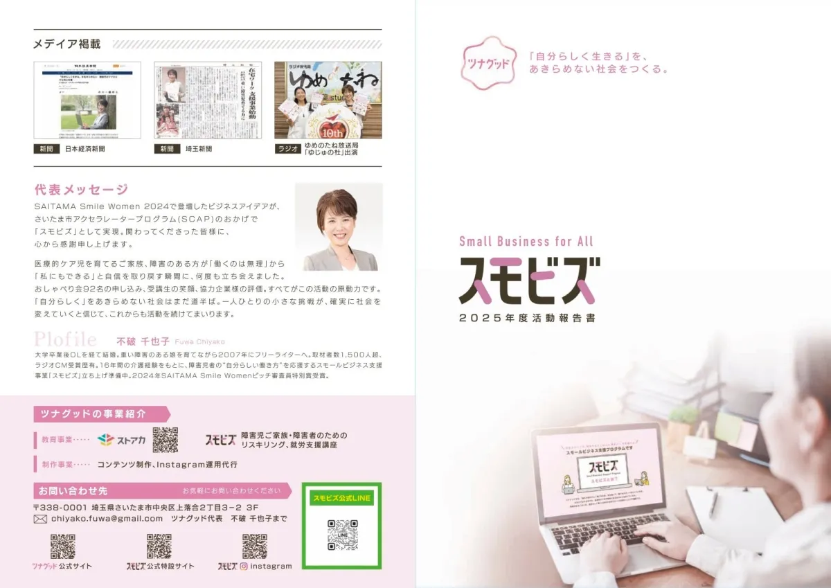 埼玉県さいたま市で、医療的ケア児を育てる家族や障害者を対象とした独自の支援プログラム「スモビズ」が進行中です。本プログラムは、公益財団法人さいたま市産業創造財団のスタートアップ支援事業「さいたま市アクセラレータープログラム(SCAP)」に選ばれたツナグッドによって運営され、2025年度から本格的に始動しました。