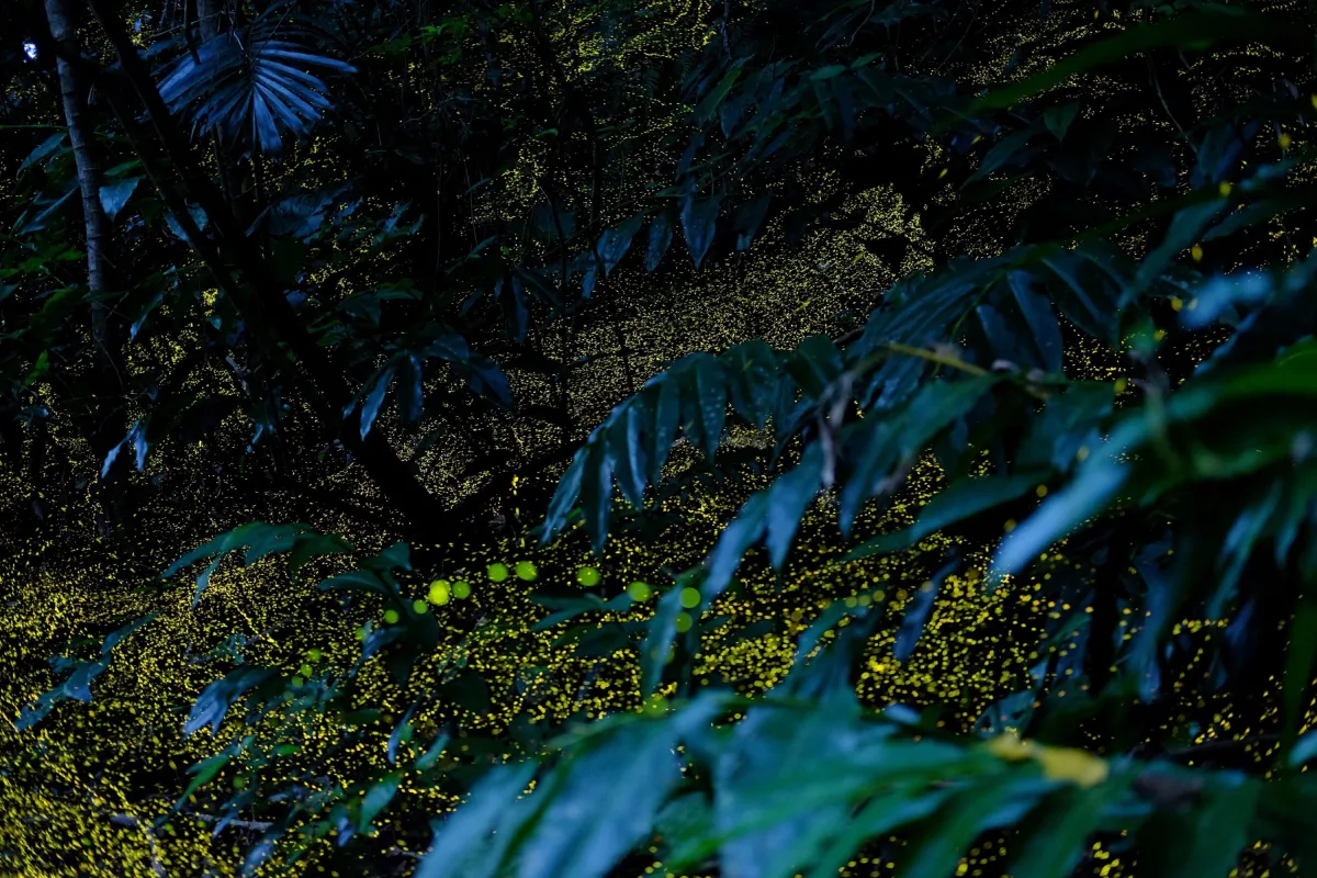 西表島で生息するヤエヤマヒメボタルは、体長がわずか2~4mmと日本最小のホタルです。このホタルは日没とともに光を放ち始め、数分後には何千匹、さらには何万匹が集まり、森はまるで美しいイルミネーションに包まれたかのような絶景を創り出します。この独特な光を観賞するために、参加者は特別に設けられた静かなスポットで、心ゆくまで美しい光のショーを楽しむことができます。