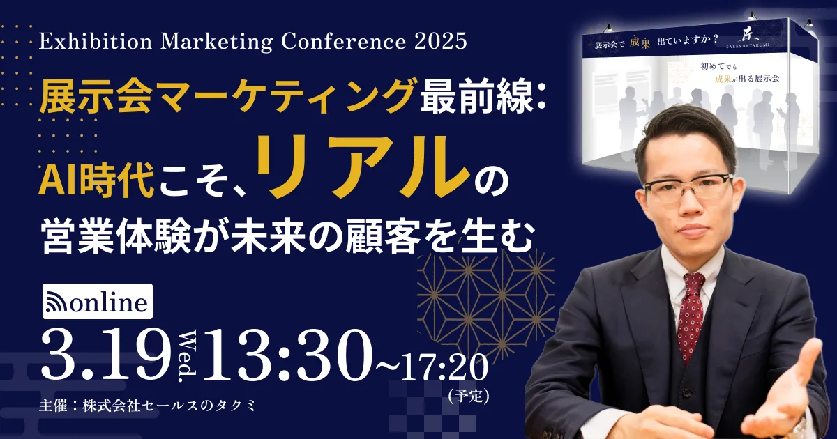 株式会社セールスのタクミが主催する「Exhibition Marketing Conference 2025」が、2025年3月19日(水)にオンラインで初めて開催されることが発表されました。この会議では、BtoBマーケティングの中での展示会の重要性や役割、さらには成功事例を通じて最新のマーケティング戦略を探求します。