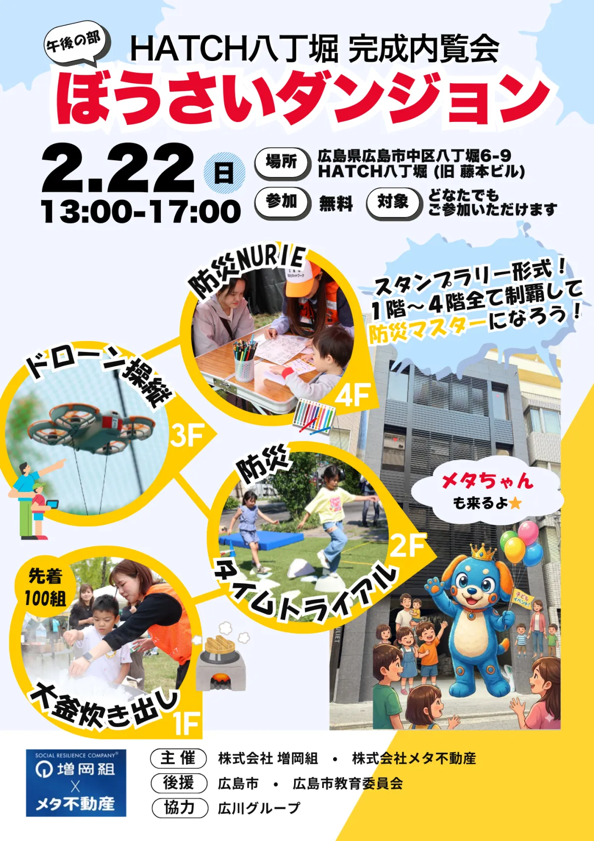 2026年2月22日(日)、広島市に新たに生まれ変わった"HATCH八丁堀"の完成内覧会が行われます。このビルは、国土交通省から西日本初の認定を受けた改修型ビルであり、地域の未来を見据えたモデルプロジェクトとなっています。この内覧会においては、専門家だけでなく一般の人々も参加できるイベントが企画されており、子どもから大人まで楽しみながら学べる防災体験型イベント"ぼうさいダンジョン"も同時に開催されます。