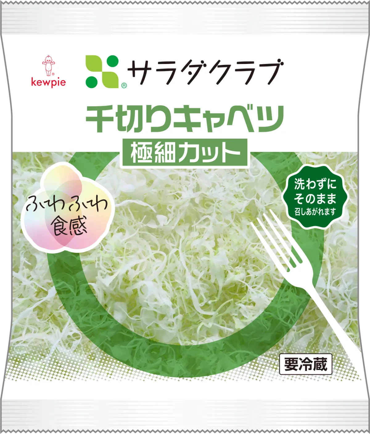 「千切りキャベツ 極細カット」は、キャベツを極限まで細かく切り、ふんわりとした食感が特徴です。この新商品は、1999年から販売されてきたサラダクラブのロングセラー「千切りキャベツ」を基にしており、その加工技術の進化を示しています。以前の千切りキャベツと比較して、その細さは約2倍になりながらも、ボリューム感のバランスも考えられているため、食べやすさが増しています。