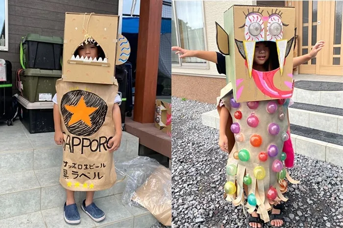 初日は、建築・デザイン学科の金子ゼミの指導のもと、段ボールや米袋を用いて、参加する子どもたちが新しい生命の衣装を創り上げます。想像の翼を広げ、自分たちのアイデアを形にする楽しさを体験することができます。