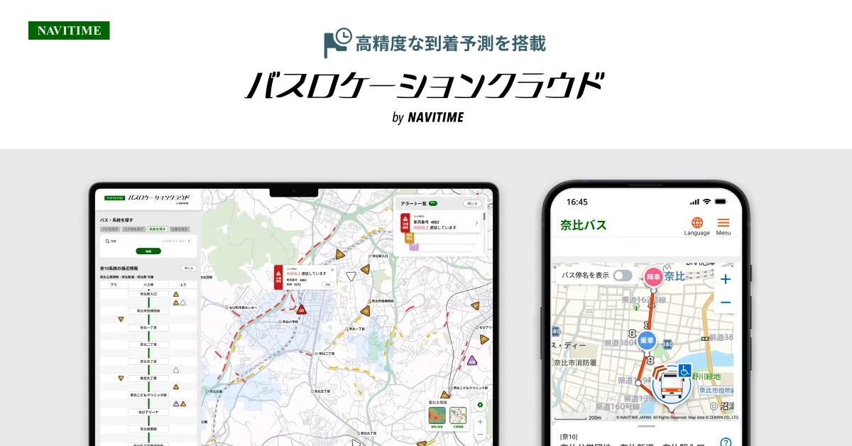 さらに、バス専用ナビゲーションアプリ『バスNAVITIME』で培った技術を基に、バス停への到着予測を高精度で行うことができます。運行管理者は、遅延情報や天候、交通渋滞をAIが分析し、的確な到着予想時刻を提供。「バスがどれくらい遅れているのか?」という利用者からの問い合わせにも的確に応えることができるでしょう。