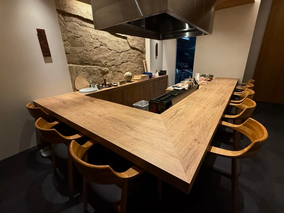 移転に伴い、焼き鳥 から嶋では空間全体の快適性を向上させるために新しい設備が導入されました。特に注目すべきは、寒さ対策として採用されたオーダーメイドパネルヒーター「ATTA-COUNTER」です。冬場、炭火焼き鳥の香ばしさを最大限に引き出すための調理環境が、寒さによって影響を受けることもあります。この課題に立ち向かうため、ATTA-COUNTERが選ばれました。