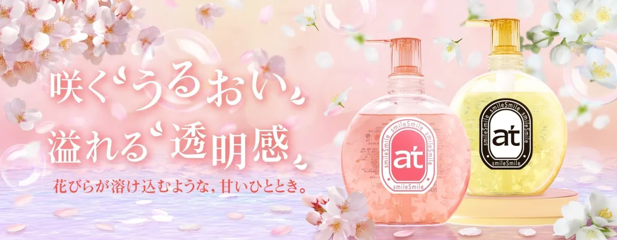 「at」のコンセプトは“咲くうるおい、溢れる透明感。”です。このハンド&ボディウォッシュは、天然の花びらを使用し、香りや視覚的楽しさだけでなく、肌への優しさも重視しています。見た目が美しいだけでなく、日常の入浴時間をより豊かにしてくれるアイテムとして、多くの女性に支持されることでしょう。
