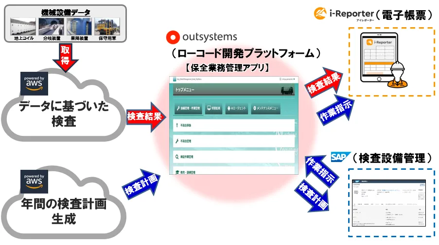 今回開発された機械運用システム(MOS)は、OutSystemsを基盤に、SAP EAMと帳票作成ソフトi-Reporterを連携させた、国内初の試みです。