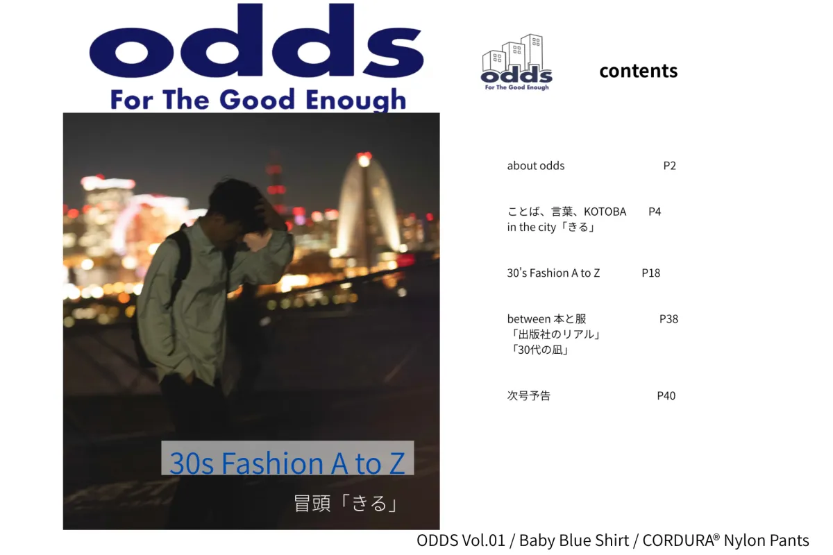 30代の洋服選びには、独特の迷いがあると言われています。20代のような若々しさは欲しくないし、40代のような落ち着きも早すぎる。TPOをしっかり考えつつも、自分の気分も大切にしたい。oddsは、そんな表現しにくい違和感に対して、ZINEと衣服の両方からアプローチしていきます。