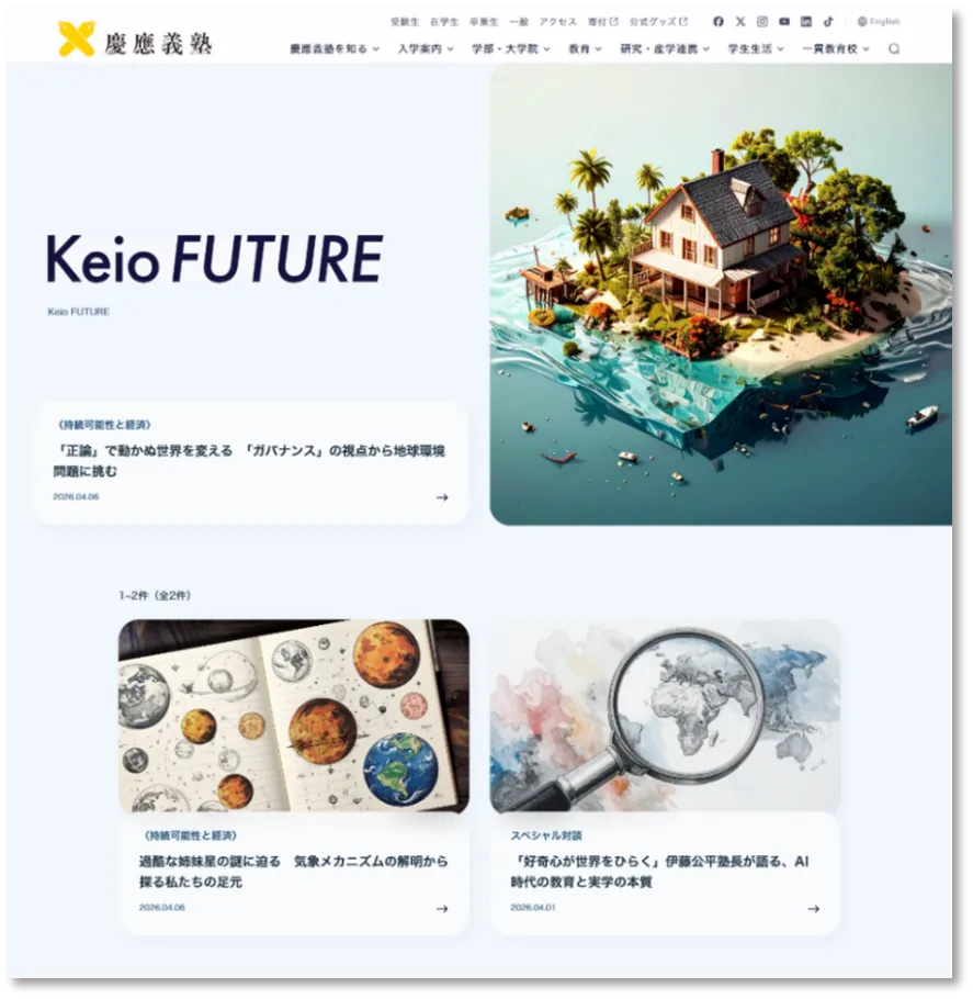 この「Keio FUTURE」は、「未来」と「世界視点」をテーマにした編集ポリシーのもと、議論を喚起し、持続可能な未来に向けた活動を促進していくことを目指しているのです。