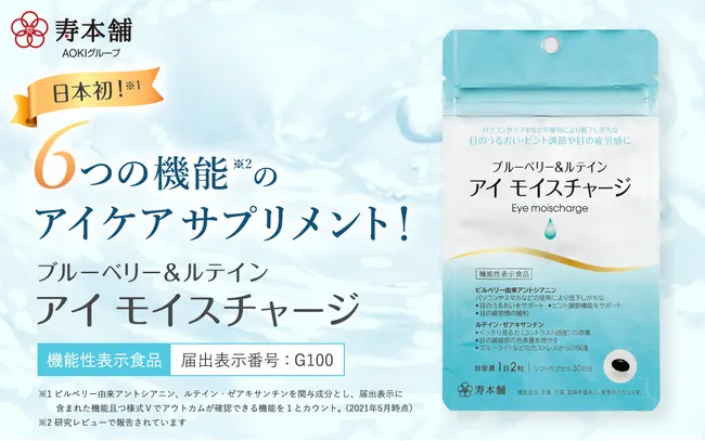 リモートワークや自宅での過ごし方が変わったコロナ禍。それにより、多くの人々が目の疲れや不調を訴えています。特に、パソコンやスマホの使用が増加したことで、目に負担がかかっている印象は否めません。そんな中、AOKIグループの寿本舗から新たに、「ブルーベリー&ルテイン アイ モイスチャージ」という機能性表示食品が発売されました。この製品は、目の健康を維持するために必要な6つの機能を備えており、疲れやすい現代人にぴったりです。